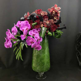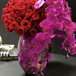 Price: $204.00 Two Dozen Premium Roses arrangement with green cymbidium orchids Product Tags: Next-day Delivery