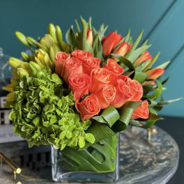 Price: $185.00 Two Dozen Premium Roses arrangement with green cymbidium orchids Product Tags: Same-day Delivery